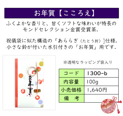 丸善製茶自慢の逸品「静岡茶こころえ」のギフト。お年賀にもオススメな簡易個装も。